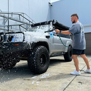Disconnect the Saltworx Foam Gun Quick Release handle or High Pressure Foam Cannon and rinse down vehicle with water.